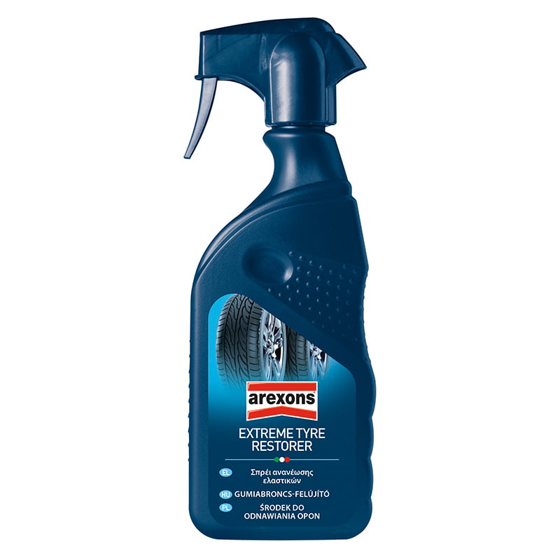 Ειδικά σχεδιασμένο για να γυαλίζει, να καθαρίζει, να ανανεώνει και να προστατεύει τα ελαστικά, το προϊόν αυτό αποκαθιστά το αρχικό τους χρώμα. Η ειδική φόρμουλα ασκεί αντιγηραντική δράση που αποκαθιστά την αρχική ελαστικότητα του ελαστικού, προστατεύοντάς το από τη σκλήρυνση και το ράγισμα λόγω της ηλιακής ακτινοβολίας. Ιδανικό για τα ελαστικά, μπορεί επίσης να χρησιμοποιηθεί σε τσιμούχες θυρών, πατάκια δαπέδου και οποιαδήποτε άλλα μέρη από καουτσούκ. Δεν καταστρέφει τις βαμμένες ή πλαστικές επιφάνειες.