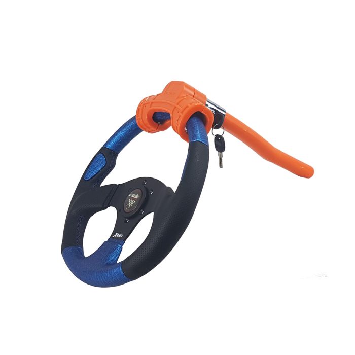 1. Ανοίξτε το μπροστινό μέρος της κλειδαριάς και τοποθετήστε το απαλά στο τιμόνι.
