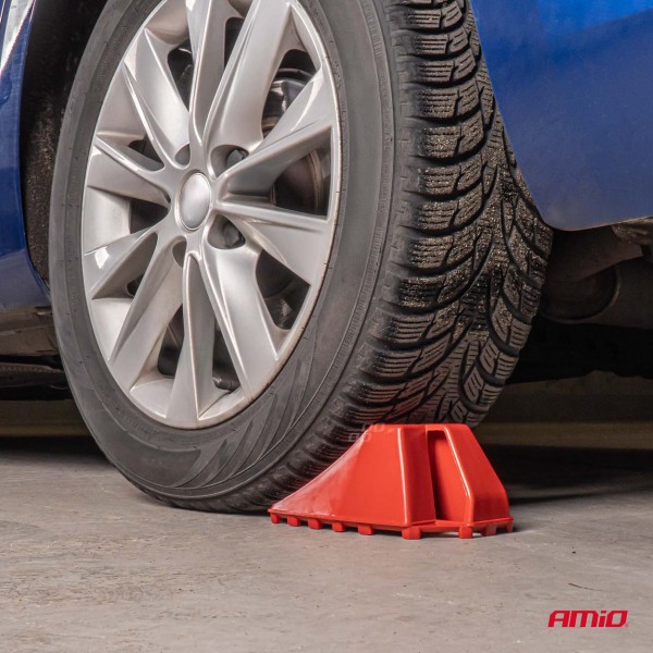 Η σφήνα τροχού αυτοκινήτου με φρένο AMIO-02793 είναι ένα πλαστικό, που έχει σχεδιαστεί για να ακινητοποιεί οχήματα, όπως αυτοκίνητα και μικρά φορτηγά, και διαθέτει ενσωματωμένο μηχανισμό πέδησης με ακίδες για επιπλέον πρόσφυση στο έδαφος.