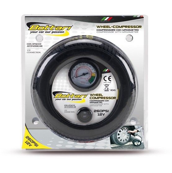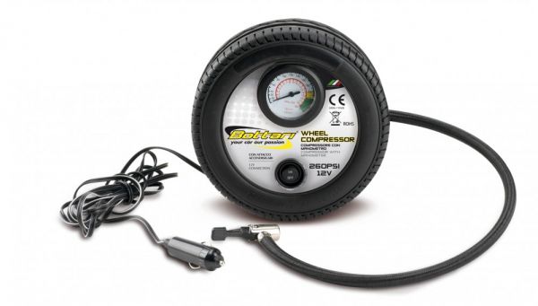 Συμπιεστής μανόμετρο WHEEL 260 PSI. Λειτουργεί στα 12 V και περιέχει διάφορα αξεσουάρ που μπορούν να χρησιμοποιηθούν για το φούσκωμα των ελαστικών αυτοκινήτων. των μοτοσυκλετών. ποδήλατα. μπάλες. στρώματα αέρα. φουσκωτές βάρκες. Και ούτω καθεξής