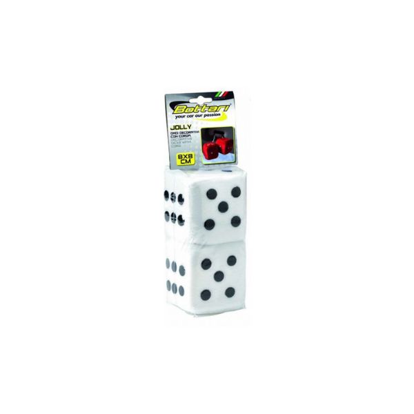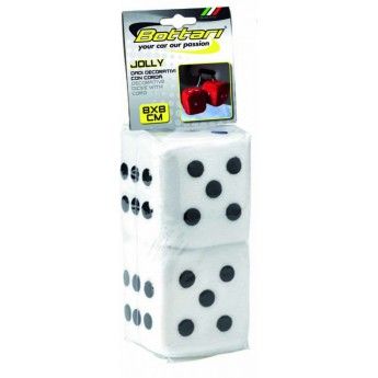 Διακοσμητικό αυτοκινήτου για τον καθρέφτη από βελούδο σε σχήμα κύβου με κορδόνι. Δύο ζάρια σε λευκό χρώμα με μαύρες βούλες