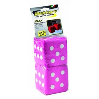 Διακοσμητικό αυτοκινήτου για τον καθρέφτη από βελούδο σε σχήμα κύβου με κορδόνι. Δύο ζάρια σε φουξ χρώμα με ασπρες βούλες