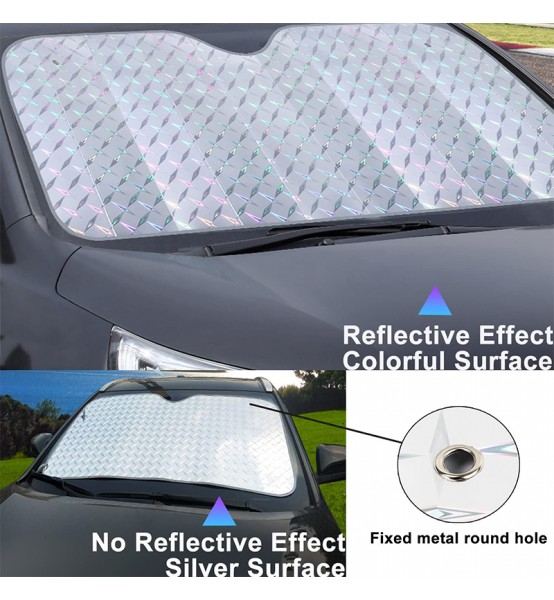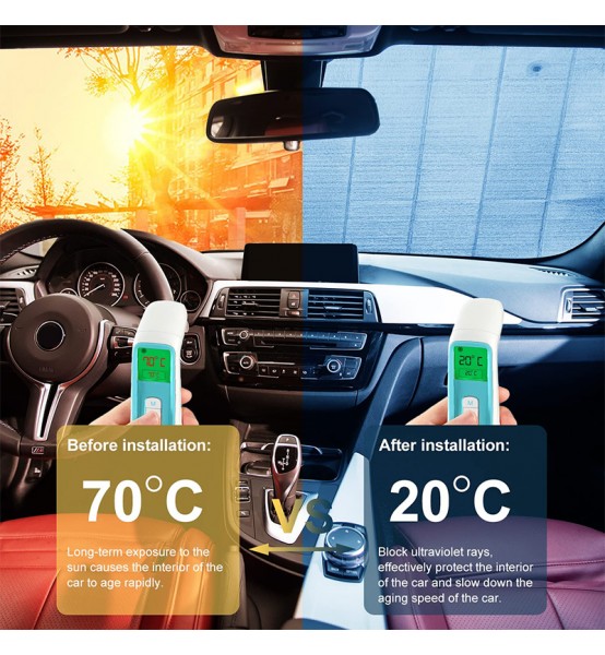Ηλιοπροστασία Laser για εσωτερική τοποθέτηση στο μπροστινό παρμπρίζ του αυτοκινήτου. Μπλοκάρει τις ακτίνες του ήλιου, διατηρώντας δροσερό το μπροστινό μέρος του αυτοκινήτου κατά τη στάθμευση. Παράλληλα προστατεύει τα υφασμάτινα μέρη στο εσωτερικό του αυτοκινήτου από το ξεθώριασμα και τα πλαστικά μέρη του αυτοκίνητου από τη διάβρωση. Τέλος, τοποθετείται με βεντούζες για πιο σταθερό κράτημα και μαζεύεται εύκολα.