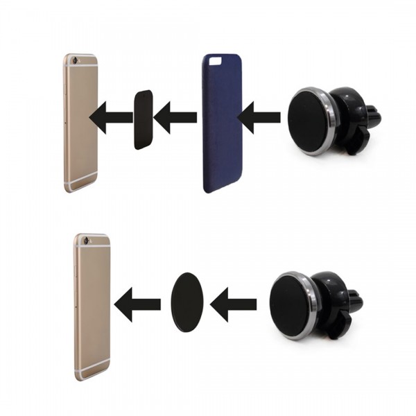 Βάση στήριξης μαγνητική για κινητό τηλέφωνο, κατάλληλη για τοποθέτηση στις γρίλιες του αεραγωγού. Μικρή σε μέγεθος και εύχρηστη για να έχετε το κινητό σας τηλέφωνο τοποθετημένο σε περίοπτη θέση. Η συσκευασία περιλαμβάνει 2 μεταλλικές πλάκες για να μαγνητίζει η ηλεκτρονική σας συσκευή απευθείας στην βάση στήριξης HOLD-02.