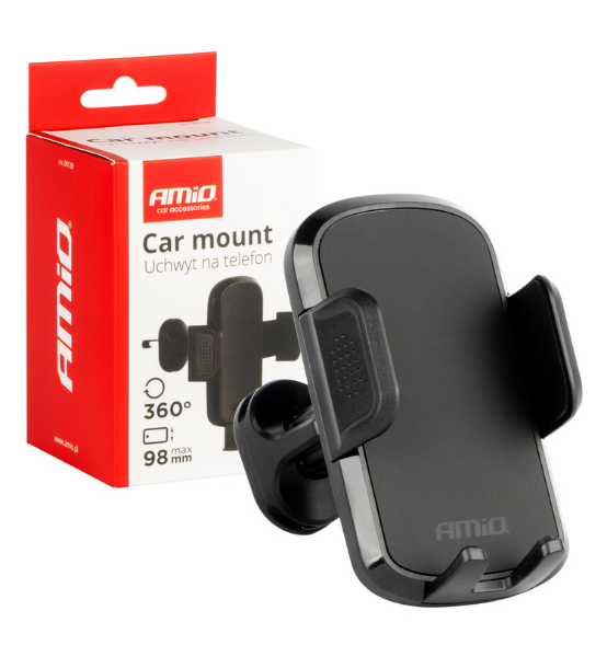 Βάση κινητού AMIO για αεραγωγούς, με περιστροφή 360° και σταθερό κράτημα. Υποστηρίζει smartphones έως 98 mm, εύκολη τοποθέτηση και ιδανική για GPS, hands-free κλήσεις και εφαρμογές.