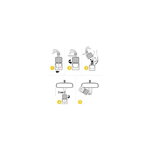 4.Ξαναβιδώστε το καπάκι, ασφαλίστε την ταινία συγκράτισης και κρεμάστε το μπουκαλάκι στον καθρέφτη σε απόσταση 3 εκατοστών περίπου.
