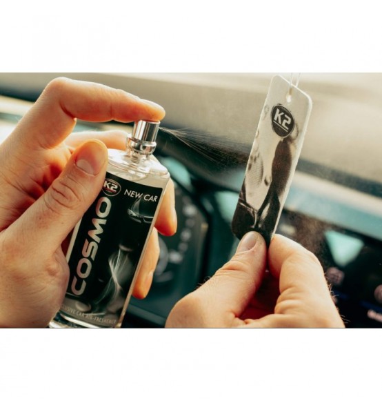Ανανεωτικό αέρα αυτοκινήτου με ατμοποιητή. Για όλους όσους εκτιμούν το κομψό στυλ. Η διακριτική σύνθεση αρώματος K2 COSMO εξουδετερώνει και απορροφά τυχόν δυσάρεστες οσμές. Το εσωτερικό του αυτοκινήτου είναι γεμάτο με μια αρωματική μυρωδιά που διαρκεί. Το K2 COSMO μπορεί να ψεκαστεί στον αέρα ή σε επικαλυμμένες επιφάνειες.