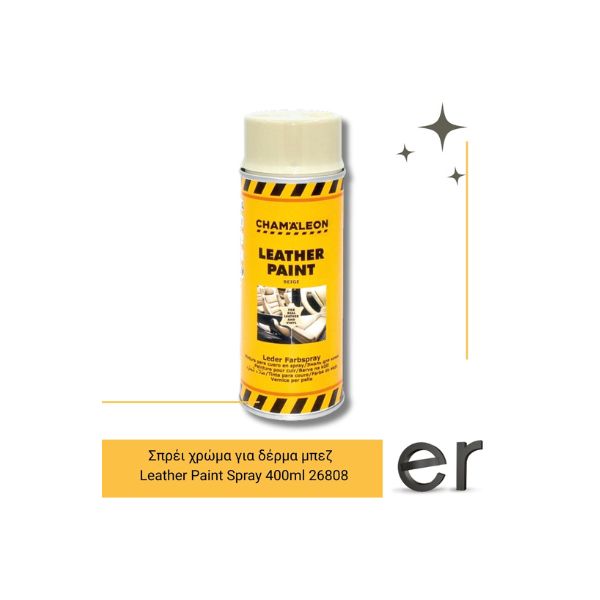 Νέο σπρέι χρώματος μπεζ LEATHER PAINT SPRAY, μπορεί να χρησιμοποιηθεί για πραγματικό δέρμα και τεχνητό δέρμα (Vinyl) και έχει εξαιρετική πρόσφυση. Υψηλής ποιότητας ελαστικό χρώμα για επιδιόρθωση ή διακόσμηση σε βινύλια, φυσικά και τεχνητά δέρματα.