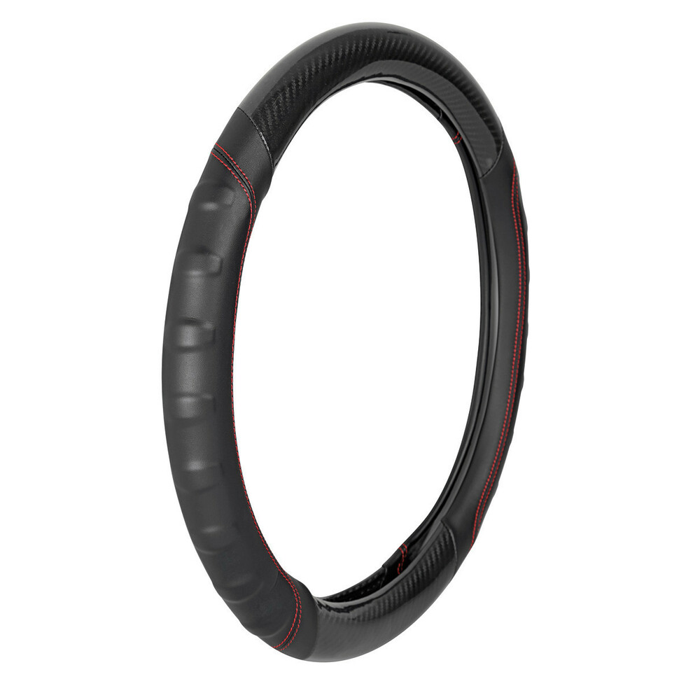 Κάλυμμα τιμονιού εξαιρετικής ποιότητας και αντοχής, μαλακής υφής, ιταλικής προέλευσης, κατασκευασμένο από TPE (Thermoplastic Elastomer), άοσμο, μη τοξικό, οικολογικό προιόν (ανακυκλώσιμο υλικό). Διαθέτει carbon (ανθρακόνημα) σχεδιασμό και δερματίνη (Thermoplastic Elastomer) στο πλάι του καλύμματος με κόκκινη ραφή. Διαθέτει εργονομική λαβή για να μπορεί να γίνεται άριστη εφαρμογή του χεριού σας κατά την οδήγηση. Η κατάλληλη λύση για να προστατεύσετε το τιμόνι σας από τις φθορές που μπορεί να προκληθούν από την τριβή κατά τη χρήση αλλά και για τα τιμόνια που ήδη έχουν φθαρεί. Το κάλυμμα τιμονιού BULLET είναι συμβατό με τιμόνια διαμέτρου 37/39 cm.