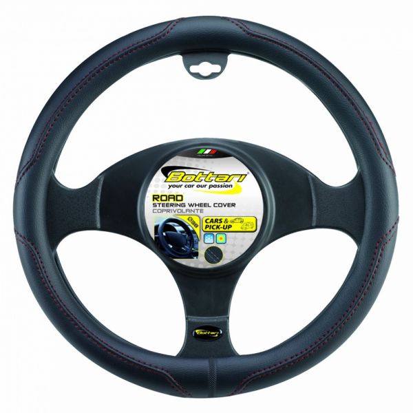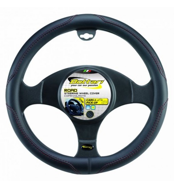 Το κάλυμμα τιμονιού ROAD είναι κατασκευασμένο από δέρμα & είναι κατάλληλο για όλους τους τύπους τιμονιών. Έχει διάμετρο 38cm και διατίθεται σε μαύρο με κόκκινη ραφή.
