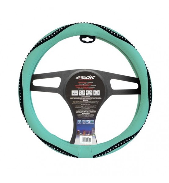 Κάλυμμα τιμονιού SNAPPY TIFFANY πράσινο/μαύρο με στρας απο οικολογικό δέρμα (Μ) 37-39cm, απο την εταιρεία SIMONI RACING, ιταλικής προέλευσης.