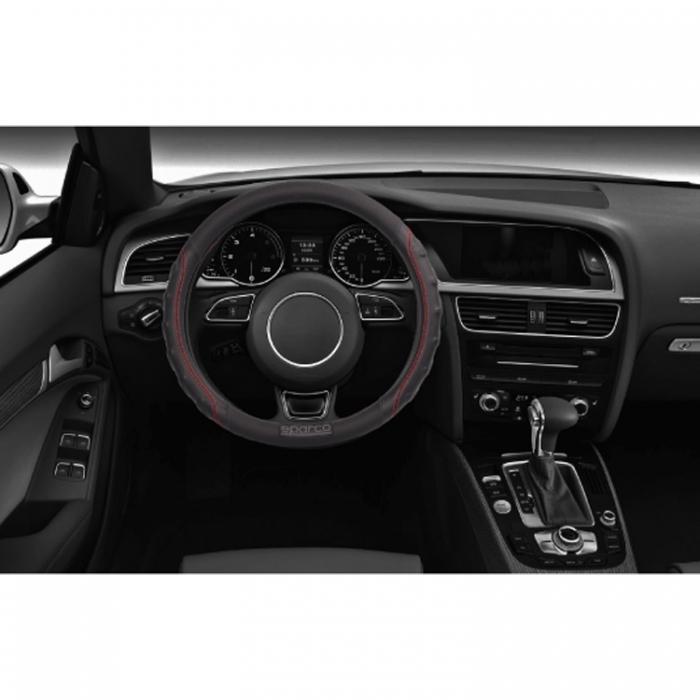 Κάλυμμα τιμονιού μαύρο με κόκκινες ραφές Sparco