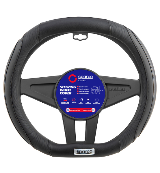 Κάλυμμα τιμονιού Sparco 35 cm με μοντέρνο, εργονομικό σχεδιασμό και αντιολισθητικό κράτημα. Εύκολο στην τοποθέτηση και ιδανικό για Peugeot 208, 308, 508, 2008, 3008, 4008, 5008 (2020→). Βελτιώνει την άνεση και το σπορ ύφος του εσωτερικού.