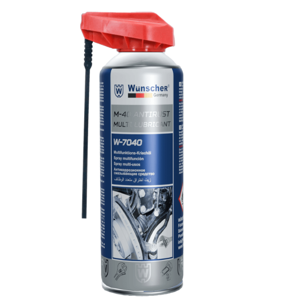 Το Wünscher M-40 Antirust Multi Lubricant είναι πολυχρηστικό λιπαντικό και αντισκωριακό σπρέι, σχεδιασμένο για λίπανση, καθαρισμό και προστασία από τη διάβρωση. Διεισδύει σε σκουριασμένα σημεία, απομακρύνει υγρασία, απελευθερώνει μπλοκαρισμένα εξαρτήματα και εξασφαλίζει ομαλή λειτουργία κινούμενων μερών. Παράλληλα προστατεύει από βραχυκυκλώματα και ρεύματα διαρροής.
