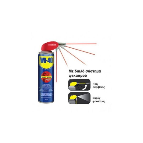 Το WD-40® Smart Straw προστατεύει τα μέταλλα από τη σκουριά και τη διάβρωση, διεισδύει σε μπλοκαρισμένους μηχανισμούς, απομακρύνει την υγρασία και λιπαίνει σχεδόν τα πάντα. Το WD-40® Smart Straw είναι σχεδιασμένο για να παρέχει ψεκασμό ακριβείας και να διεισδύει σε κολλημένα ή μπλοκαρισμένα μέρη, να τα λιπαίνει και να απομακρύνει την υγρασία, προστατεύοντας έτσι και τα πιο δυσπρόσιτα σημεία. Χάρη στην έξυπνη τεχνολογία Διπλού Ψεκασμού, μπορείτε απλά να κατεβάσετε το ακροφύσιο και να χρησιμοποιήσετε το ευρύ ακροφύσιο ψεκασμού σε περίπτωση που θέλετε να καλύψετε μεγαλύτερη επιφάνεια. ΠΛΕΟΝΕΚΤΗΜΑΤΑ WD-40® SMART STRAW®
