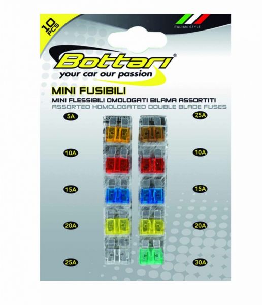 Σετ 10 mini lamellar ασφάλειες Οι MINI FUSES είναι κατασκευασμένες για να ταιριάζουν σε όλους τους τύπους αυτοκινήτων. Οι ασφάλειες είναι 5A-7.5A-10A-15A-20A-25A-30A.