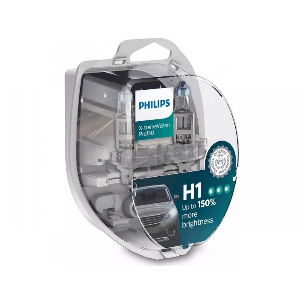 Philips X-Treme Vision H1 +150 % Λάμπες Αυτοκινήτου. Ζεύγος λάμπες αυτοκινήτου Philips H1 X-treme Power με 150 % με 3450 kelvin, με περισσότερο φώς για άνετη και ασφαλέστερη οδήγηση με μεγαλύτερη διάρκειά ζωής. Οι νέες λάμπες X-treme Power της Philips προσφέρουν περισσότερη φωτεινότητα στο δρόμο για καλύτερη ορατότητα και μέγιστη ασφάλεια, χωρίς να καταναλώνουν παραπάνω ρεύμα. Είναι 12V 55W και απευθύνεται σε οδηγούς που θέλουν να αντικαταστήσουν τις απλές λάμπες του αυτοκινήτου τους και να έχουν μέγιστη φωτεινότητα. Με τη τεχνολογία Philips με χαλαζία γυαλιού diamond precision επιτυγχάνεται μεγαλύτερη φωτεινότητα εως 70 μέτρα πιο μακρυά, από οποιεσδήποτε άλλες αντίστοιχες. Έχουν : 1) Nήμα υψηλής απόδοσης, με μικρότερη διάμετρο (αποκλειστική κατασκευή της Philips). 2) Ενισχυμένο μείγμα αερίων για μέγιστη απόδοση φωτός και εντυπωσιακή κορυφή χρωμίου, με ένα μπλε δακτύλιο, για ακριβέστερη ορατότητα. Χρήσιμες εκτός από τους δρόμους της πόλης και για διαδρομές απαιτητικές και δύσκολες για Racing καταστάσεις. Ασφαλής χρήση και σε πλαστικά φανάρια με εύκολη τοποθέτηση, βγάζουμε τις παλιές και βάζουμε τις καινούριες.