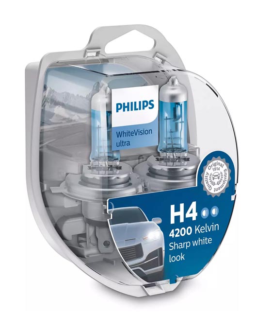 To σέτ περιέχει 2 λαμπτήρες White Vision ultra H4 και 2 λαμπτήρες W5W έτσι ώστε να αποχτήσει άσπρο χρώμα και η μικρή σας σκάλα φώτων