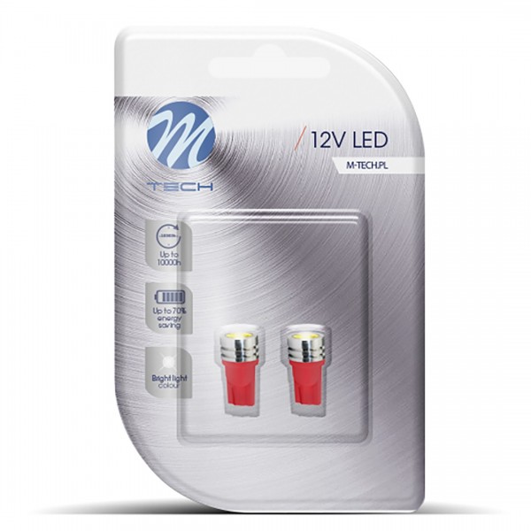 T10 W5W 12V W2,1×9,5d LED 1xHP ΚΟΚΚΙΝΟ (ΚΑΡΦΩΤΟ ΑΚΑΛΥΚΟ) BLISTER 2ΤΕΜ. M-TECH