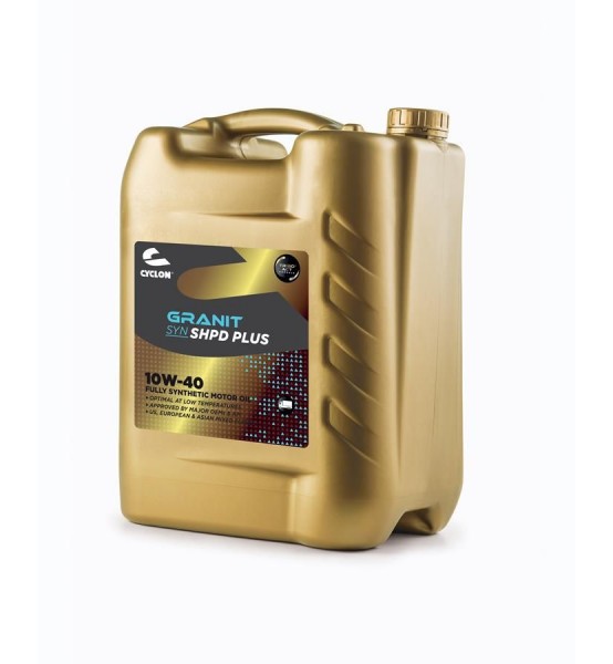 Το GRANIT SYN SHPD PLUS SAE 10W-40 είναι υψηλής ποιότητας, πλήρως συνθετικό λιπαντικό κινητήρα ντίζελ υπερυψηλών επιδόσεων, εγκεκριμένο από τους μεγαλύτερους παγκόσμιους κατασκευαστές οχημάτων για χρήση στους τελευταίους κινητήρες τους Euro III+ έως Euro V. Σχεδιασμένο με τη “φόρμουλα TriboACT®” αποκλειστικής τεχνολογίας, το GRANIT SYN SHPD PLUS SAE 10W-40 αποτελεί την αξιόπιστη ραχοκοκαλιά πολλών στόλων οχημάτων, διαθέτοντας ACEA E7 και CI-4, παρέχοντας προστασία από τη φθορά και την απόδοση του κινητήρα ως στάνταρ και διασφαλίζοντας τη βέλτιστη λειτουργία του υπερσυμπιεστή ελαχιστοποιώντας τον σχηματισμό επικαθίσεων.